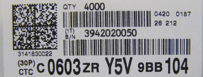 如上圖所示臺(tái)灣國(guó)巨貼片電容標(biāo)簽(YAGEO第3廠,簡(jiǎn)稱Y3廠)
